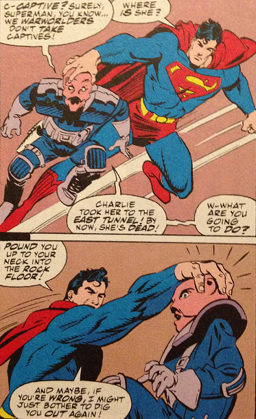 Seconds later. a red and blue blur socks Green Lantern clear across the battlefield. Superman says he can't be handled easily and stands before Batman. He asks him what can he do.